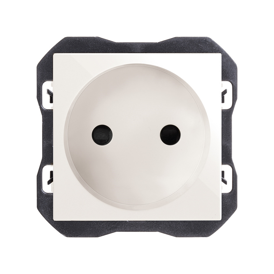 Base de enchufe bipolar para empotrar de la SERIE SIMON 270, perteneciente a la subserie S270 Estética Tradicional ICON en color blanco. Diseñada para integrarse en la Colección de mecanismos empotrables, ofrece una solución funcional y estética para ins