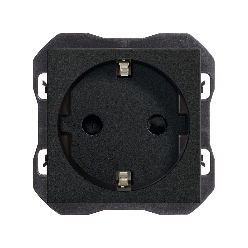 Base de enchufe Schuko de empotrar con embornamiento por tornillo, perteneciente a la Serie Simon 270, colección de mecanismos de empotrar con estética tradicional ICON. Diseñada para instalaciones domésticas y terciarias, garantiza una conexión segura y