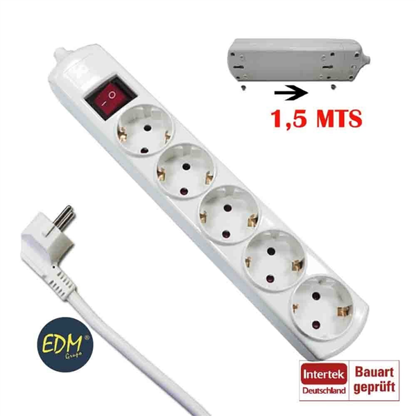 BASE MULTIPLE 5 TOMAS EASY-FIX 3X1,5mm 1,5MTS DE CABLE CON INTERRUPTOR T/TL 10/16A EDM