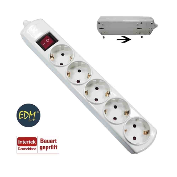 BASE MULTIPLE 5 TOMAS EASY-FIX CON INTERRUPTOR T/TL 10/16A EDM (SIN CABLE)