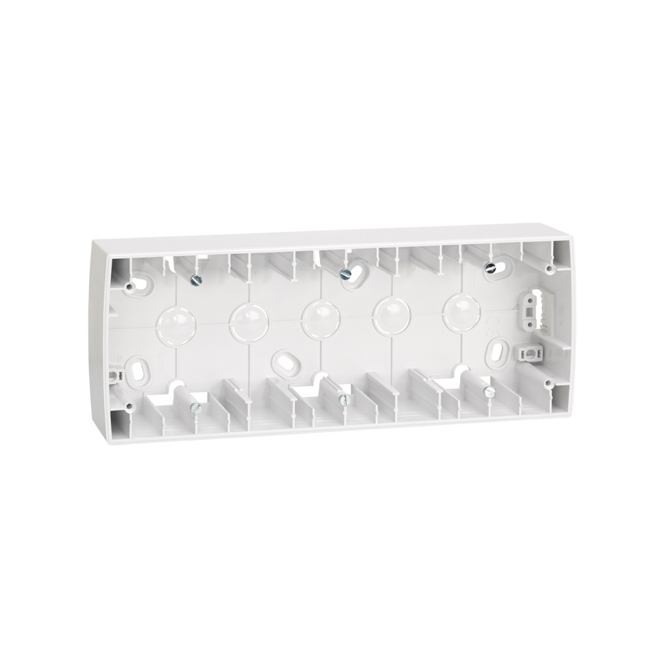 Caja de superficie alta para 3 elementos, especialmente diseñada para la instalación de mecanismos de la Serie 82 de empotrar. Permite montar hasta tres dispositivos en un solo conjunto, ofreciendo una solución práctica cuando no es posible realizar empo