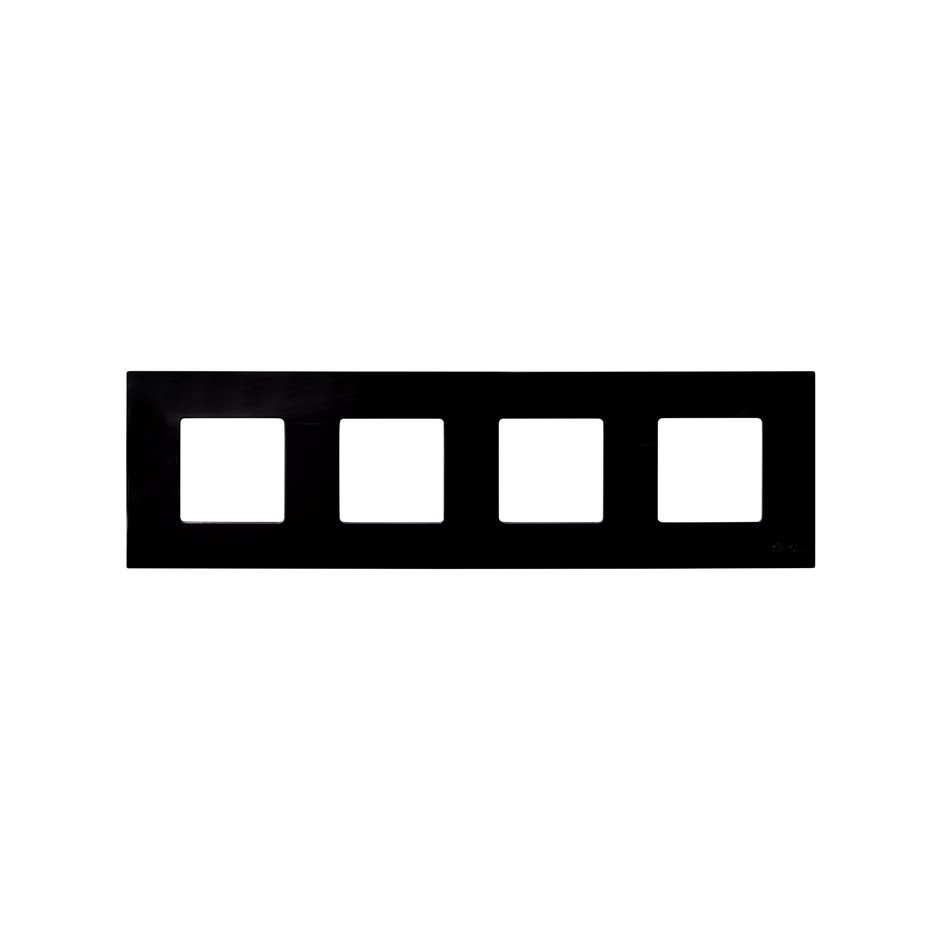 Funda de 4 elementos en color negro perteneciente a la Colección de mecanismos Serie 27 Play para instalación empotrada. Diseñada para combinar con los mecanismos de la familia Serie 27, ofrece un acabado moderno y discreto que se integra en cualquier am