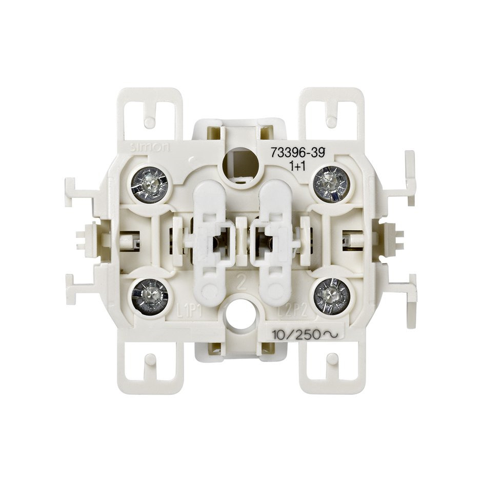 Mecanismo de 2 pulsadores de la Serie 73 Loft, diseñado para instalaciones en superficie dentro de la colección de mecanismos. Ideal para el control de distintos puntos de iluminación o funciones independientes desde un mismo conjunto, ofreciendo un dise