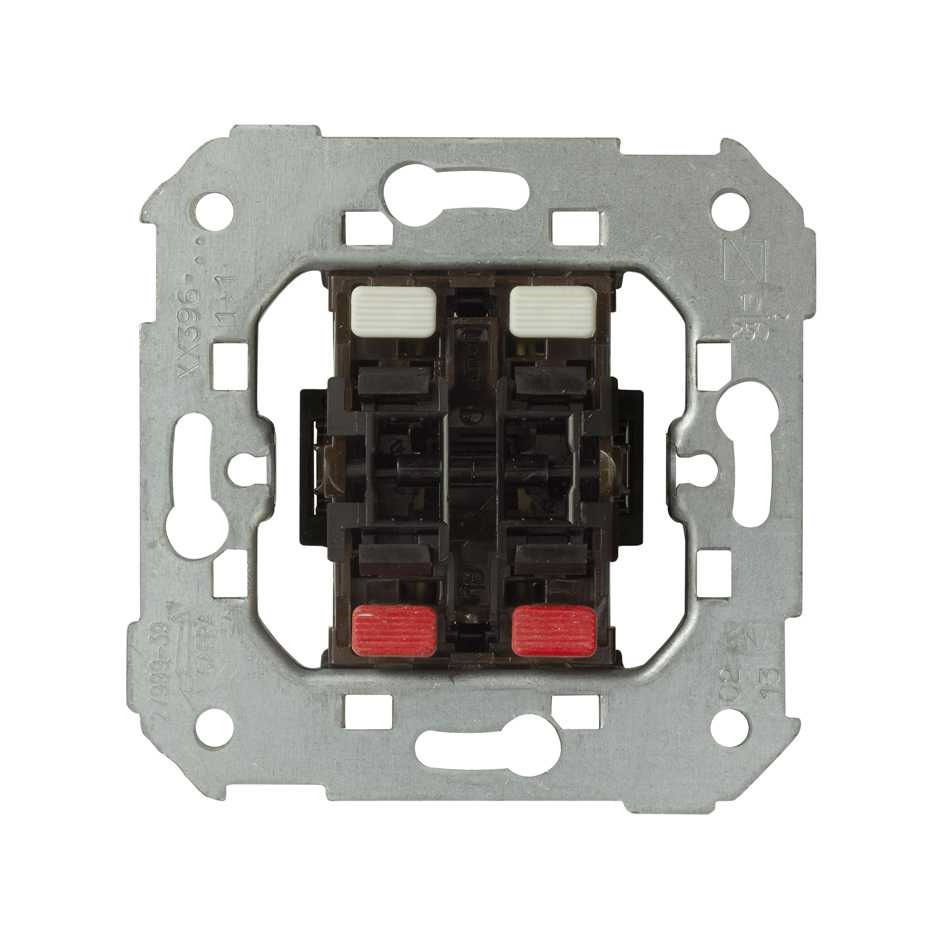 Grupo de 2 pulsadores de la Serie 75, diseñado para instalaciones empotradas dentro de la colección de mecanismos. Ideal para el control de dos puntos de iluminación u otras funciones independientes desde un mismo conjunto. Pertenece a la gama de mecanis