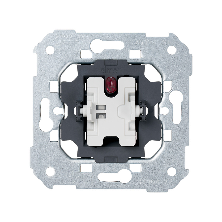 Interruptor con indicador luminoso perteneciente a la Serie 75 de mecanismos empotrables. Diseñado para instalación en caja de empotrar, permite el control de la iluminación con una señal visual integrada que indica el estado del circuito o facilita su l