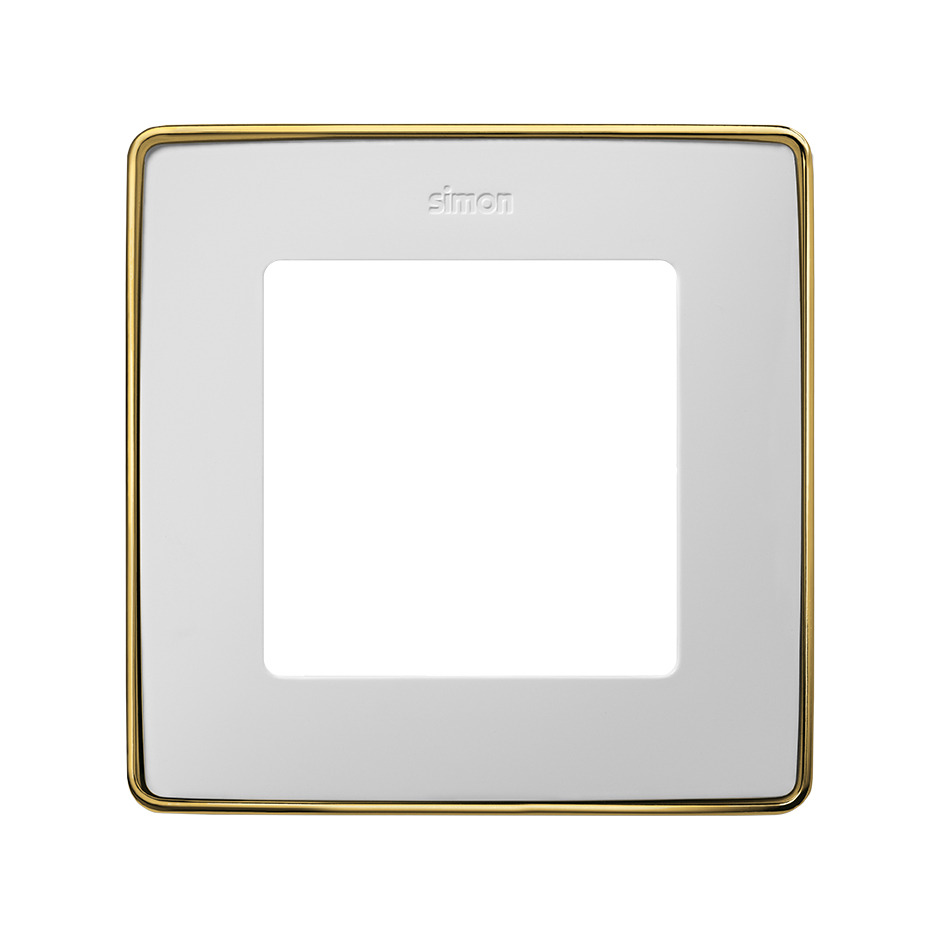 Marco para 1 elemento de la Serie 82 Detail, acabado en color blanco con base en oro, diseñado para empotrar en pared dentro de la colección de mecanismos L69 DETAIL SELECT. Aporta un toque elegante y exclusivo a las instalaciones eléctricas, combinando