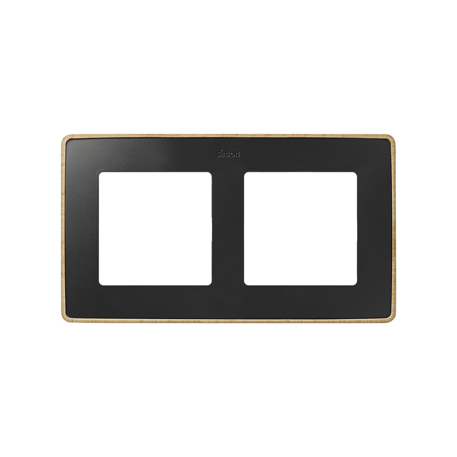 Marco de 2 elementos en color negro mate con base en haya, perteneciente a la Serie 82 Detail de la gama L69 DETAIL SELECT para mecanismos empotrables. Diseñado para integrarse en soluciones de Colección de mecanismos, ofrece una estética moderna y elega