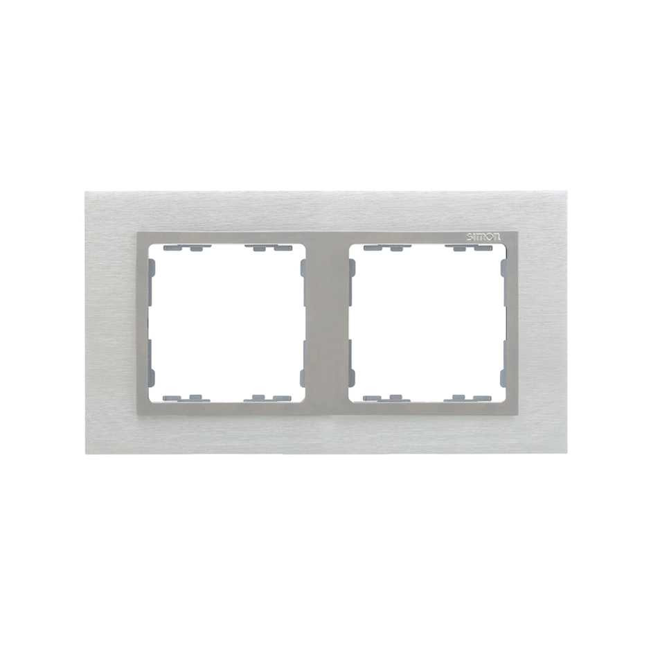 Marco para 2 elementos de la Colección de mecanismos Serie 82 Nature, para instalación empotrada. Fabricado en acabado inox mate con tonalidad aluminio, aporta un diseño moderno y elegante que se integra en todo tipo de ambientes. Pertenece a la familia