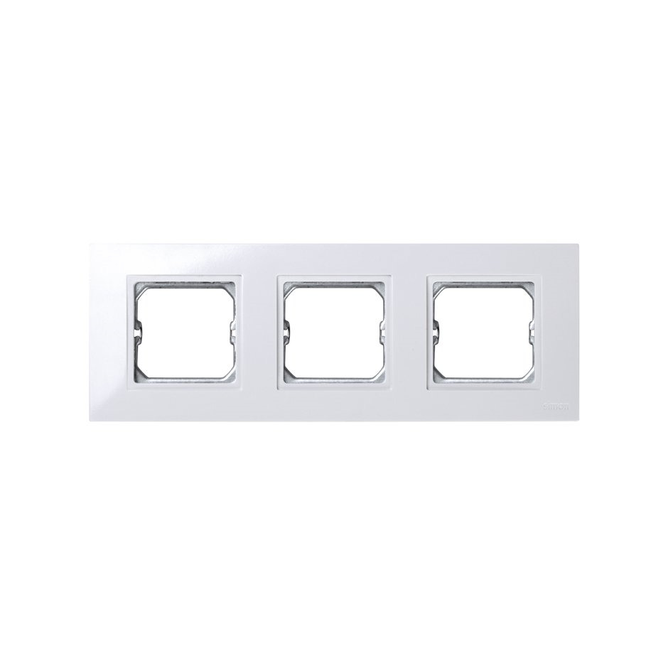 Marco de 3 elementos compacto en color blanco, pieza intermedia de la Serie 27 Play para mecanismos empotrables. Diseñado para integrar y alinear hasta tres mecanismos en una misma caja, ofrece una estética moderna y uniforme en instalaciones residencial
