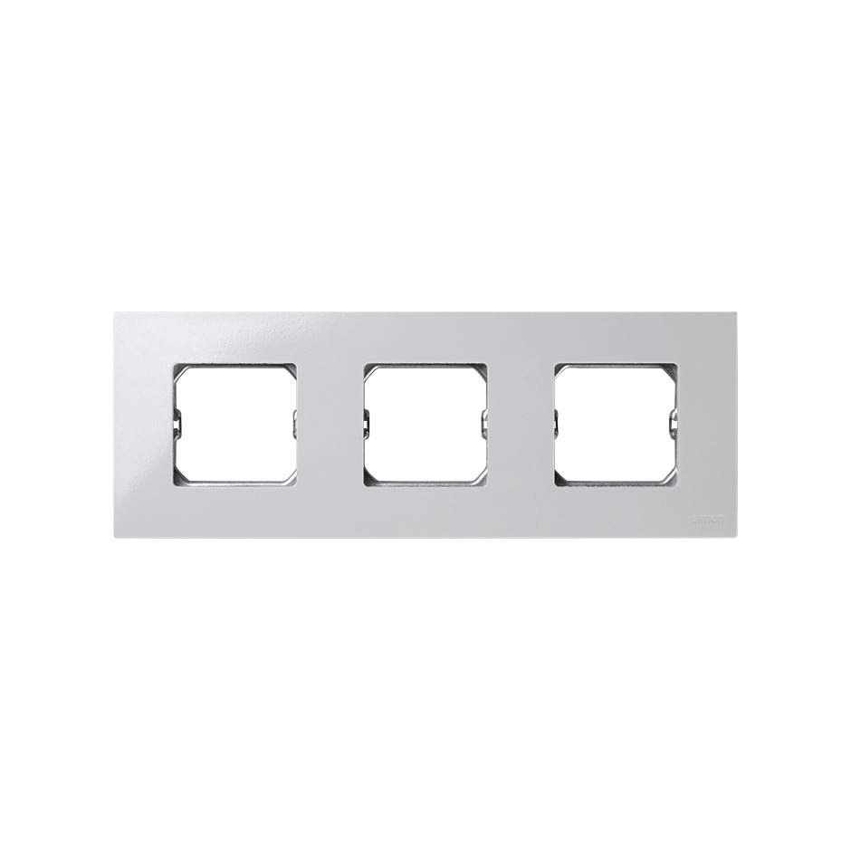 Marco de 3 elementos compacto en color blanco, perteneciente a la Serie 27 Play de mecanismos empotrables. Diseñado para integrar tres funciones en una misma envolvente, ofrece una instalación limpia y alineada, ideal para viviendas y espacios comerciale