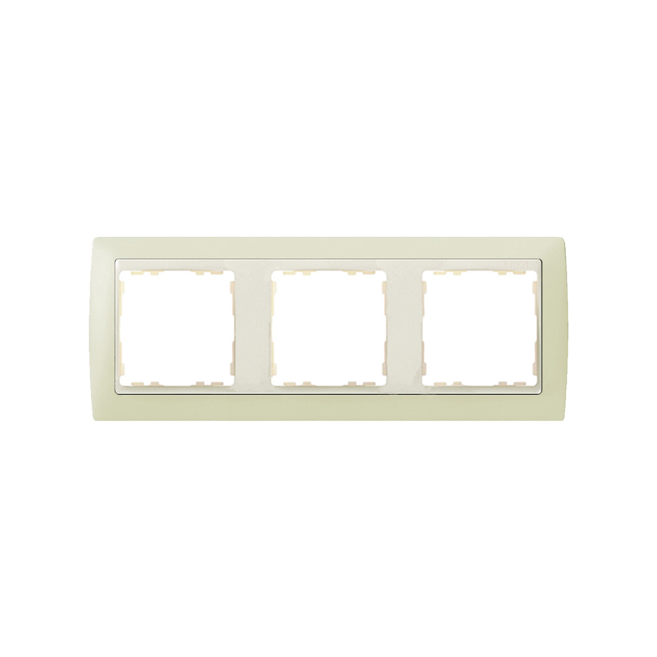Marco para 3 elementos en color marfil, perteneciente a la Colección de mecanismos Serie 82 de empotrar. Diseñado para integrar hasta tres mecanismos de la familia de Mecanismos Empotrar, ofrece una estética discreta y funcional ideal para instalaciones