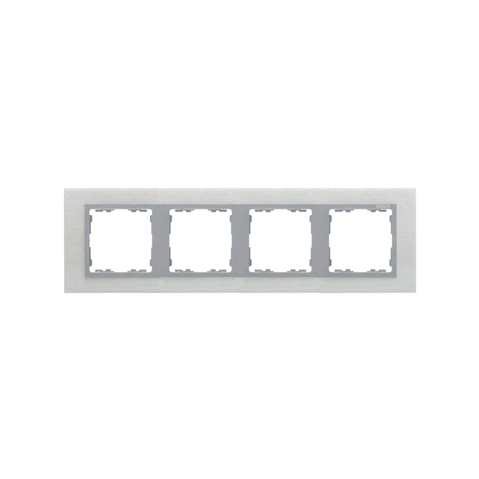 Marco de 4 elementos de la Serie 82 Nature para mecanismos empotrados, acabado inox mate aluminio que aporta un diseño moderno y elegante a cualquier estancia. Ideal para combinar con la gama de mecanismos de la Serie 82, permite una instalación alineada