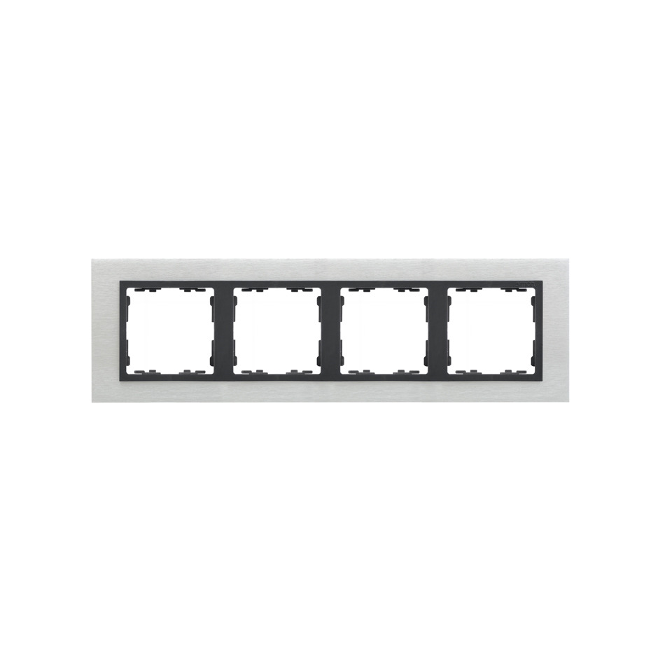 Marco de 4 elementos de la Serie 82 Nature para mecanismos empotrados, acabado inox mate aluminio...