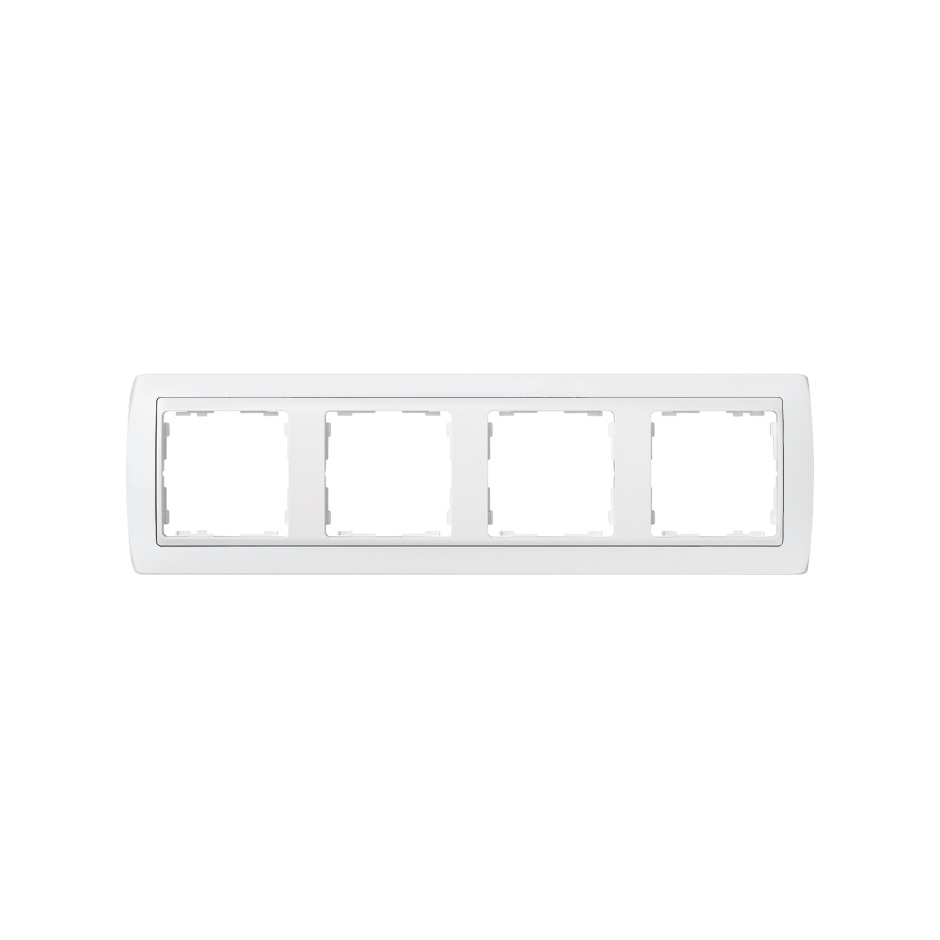 Marco de 4 elementos en color blanco, perteneciente a la Serie 82 de mecanismos empotrables, diseñado para integrar de forma elegante y discreta diversos mecanismos eléctricos en instalaciones residenciales o terciarias. Fabricado con materiales de alta