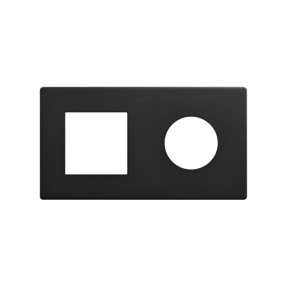 Marco de composición para 2 elementos con icono y estética mínima, diseñado específicamente para la serie CLEAN schuko de la Colección de mecanismos SIMON 270 de empotrar. Presenta un diseño depurado y contemporáneo, ideal para instalaciones modernas que