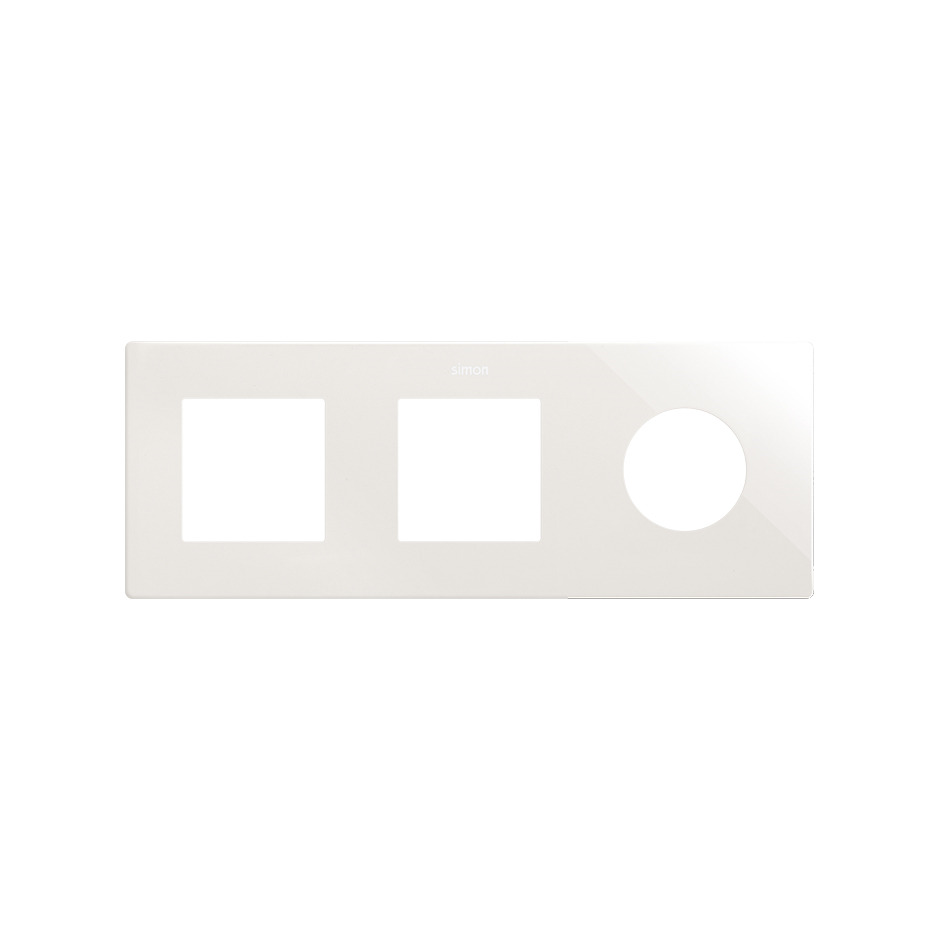 Marco de composición de 3 elementos para empotrar, diseñado para integrar 2 mecanismos con estética ICON y 1 posición mínima para enchufe de la gama CLEAN. Perteneciente a la Serie Simon 270, subserie Estética Mínima en color blanco, ofrece una solución