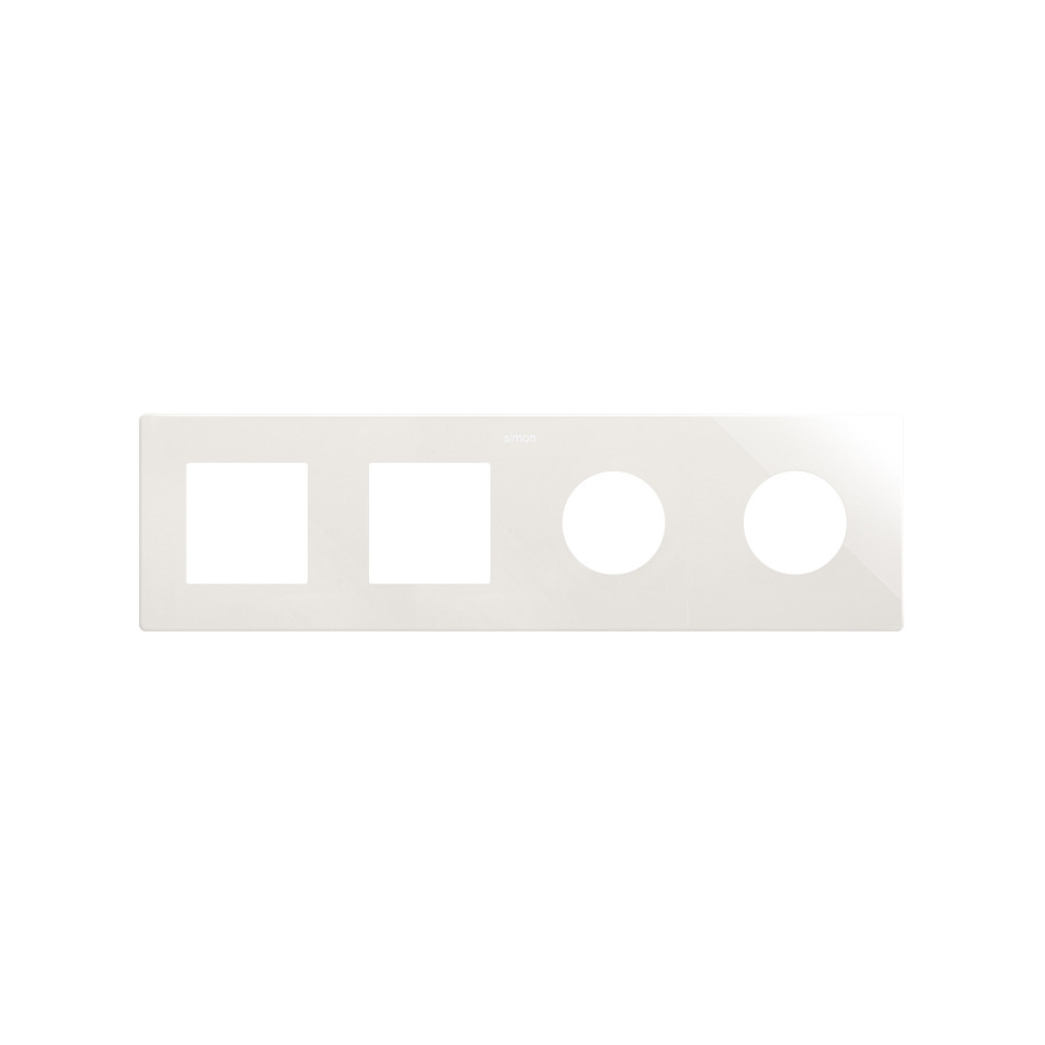 Marco de composición para 4 elementos (2 ICON + 2 estética MiNIMA) diseñado para la instalación de enchufes y mecanismos de la Colección de mecanismos SIMON. Pertenece a la SERIE SIMON 270 de empotrar, subserie S270 ESTÉTICA MiNIMA en color blanco, ofrec
