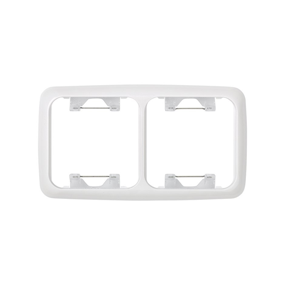 Marco de urea de 2 elementos perteneciente a la Colección de mecanismos Serie 31 para empotrar. Diseñado para alojar dos mecanismos en instalaciones empotradas, ofrece una solución funcional y estética para interruptores y tomas de corriente. Fabricado e