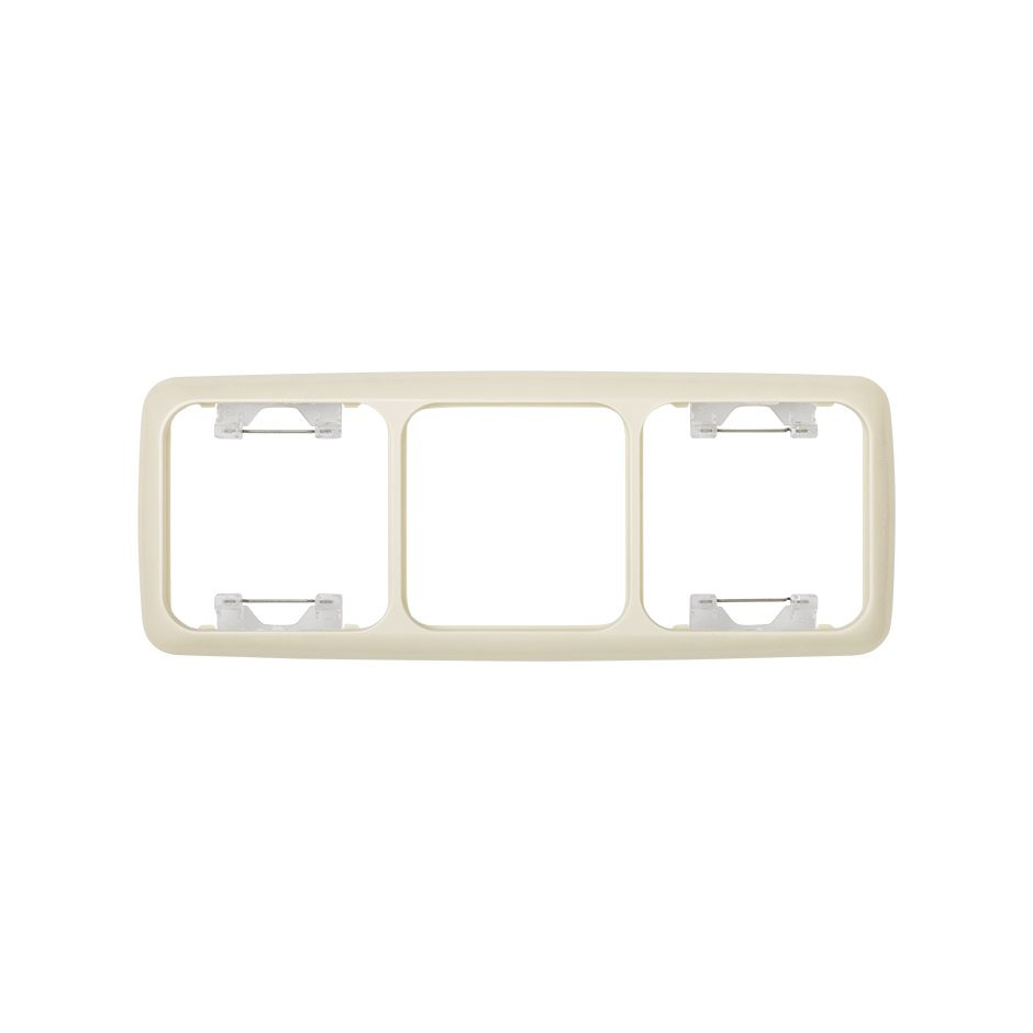Marco de urea de 3 elementos perteneciente a la Serie 31 de mecanismos empotrables, diseñado para la instalación en colecciones de mecanismos de empotrar. Ofrece una estética discreta y funcional, ideal para integrar varios mecanismos en una misma placa,