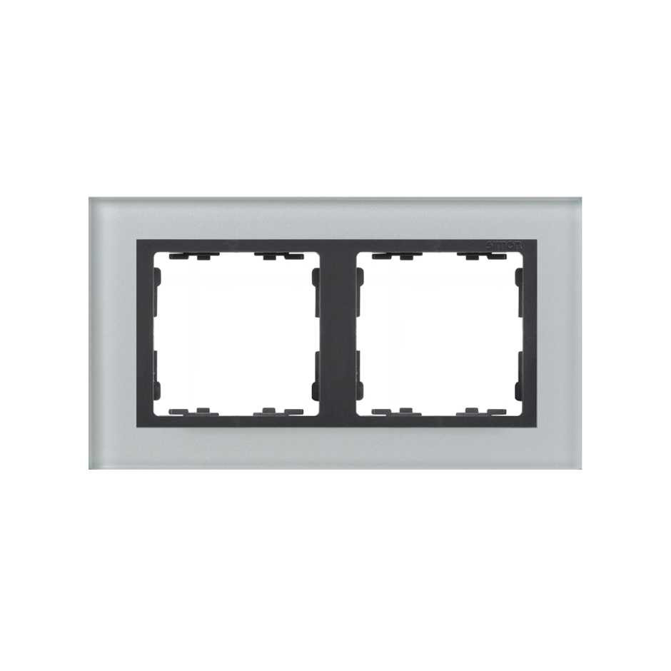 Marco doble MARCO II CRISTAL GRIS de la Serie 82 Nature, diseñado para mecanismos empotrados de la Colección de mecanismos. Su acabado en cristal gris aporta un estilo moderno y elegante, ideal para integrarse en ambientes contemporáneos y espacios de di