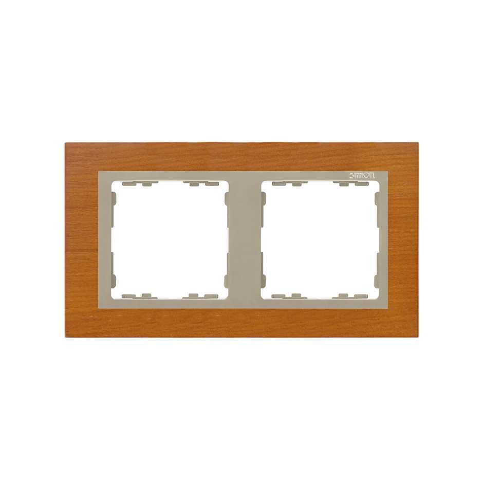Marco doble de empotrar Serie 82 Nature en acabado madera roble, diseñado para la instalación de mecanismos de la Colección de mecanismos Serie 82. Su estética en madera natural aporta calidez y elegancia a cualquier estancia, integrándose perfectamente