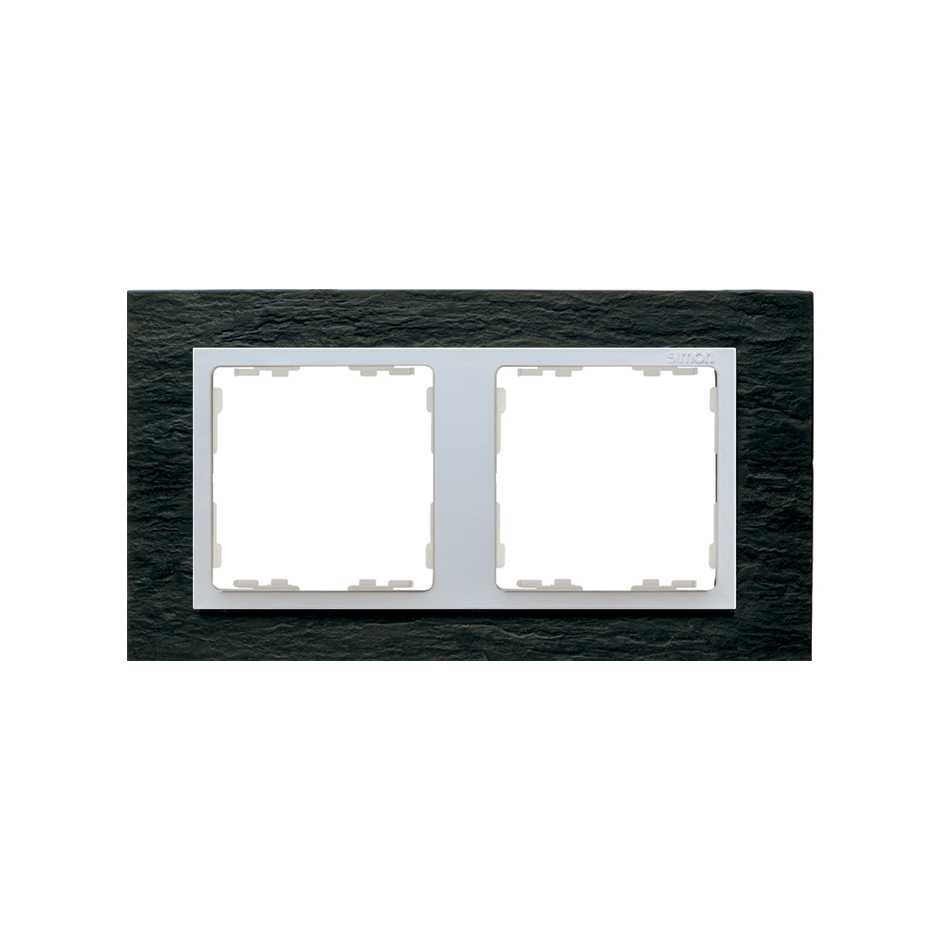 Marco II Pizarra de la Serie 82 Nature para mecanismos empotrados. Diseñado para alojar dos elementos de la colección de mecanismos, ofrece una estética moderna en acabado pizarra, ideal para integrar en interiores contemporáneos. Perteneciente a la gama