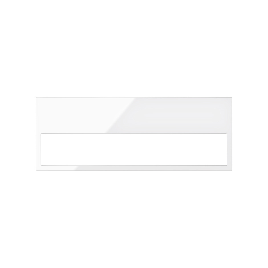 Marco mínimo de 3 elementos en color blanco, perteneciente a la Serie Simon 100 front brillo para mecanismos empotrados. Diseñado para la Colección de mecanismos Simon 100, permite la instalación alineada de hasta tres mecanismos en formato modular, ofre