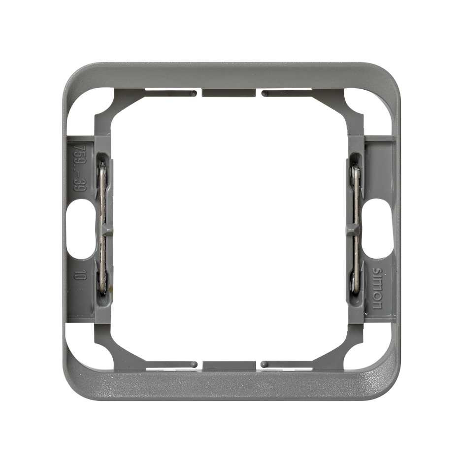 Pieza adaptadora en color gris perteneciente a la Colección de mecanismos, Serie 75 de empotrar. Diseñada para integrar y adaptar mecanismos dentro de la gama Serie 75 acabados, permite una instalación limpia y uniforme, garantizando una correcta sujeció