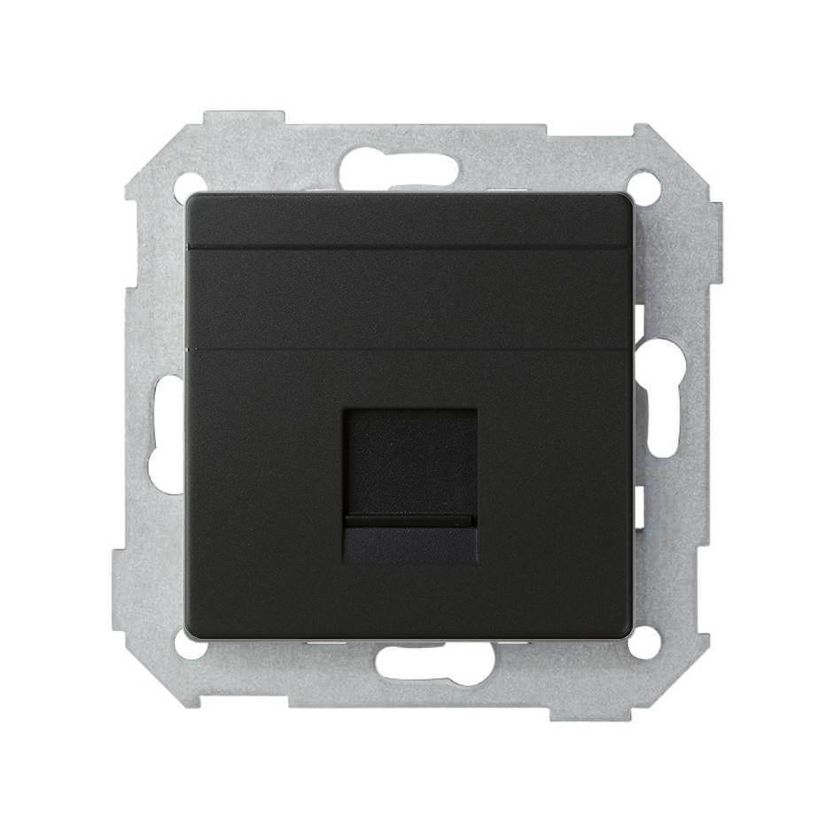 Placa universal plana para voz y datos con obturador antipolvo, diseñada para alojar 1 conector RJ45. Pertenece a la Serie 82 Concept de mecanismos empotrables, ofreciendo un acabado moderno y discreto que se integra en todo tipo de instalaciones residen
