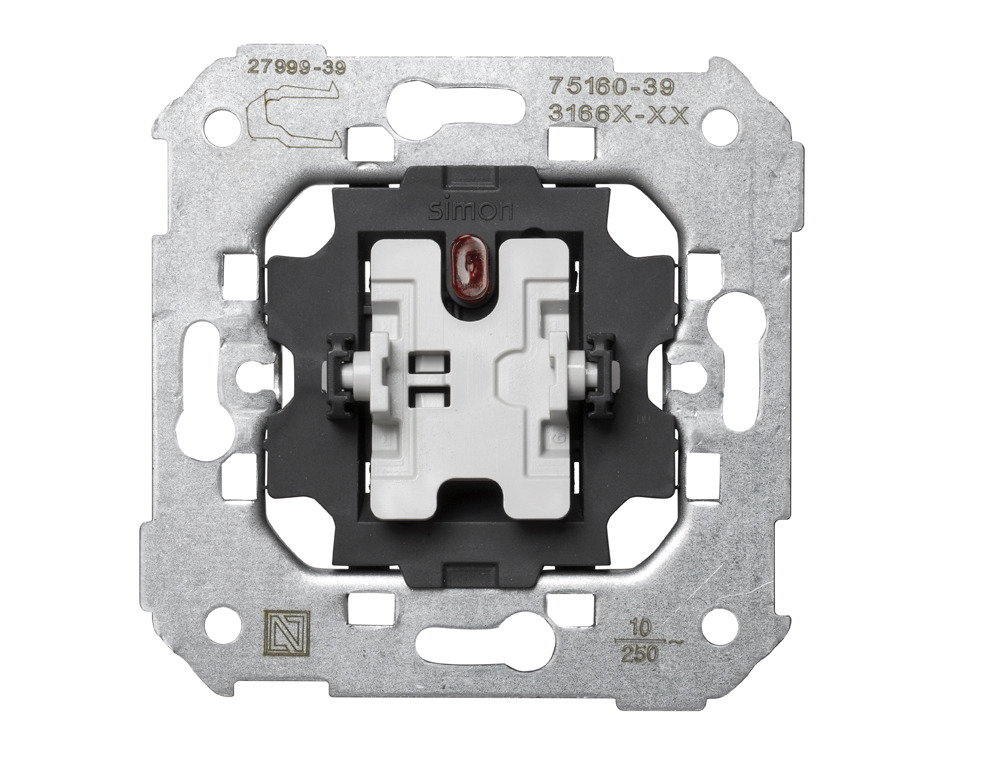 Pulsador con luminoso Serie 75, diseñado para mecanismos de empotrar. Indicado para el control de iluminación u otras cargas, incorpora testigo luminoso que facilita su localización en la oscuridad y confirma el estado de funcionamiento. Pertenece a la c