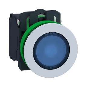 GamaHarmony XB5 Tipo de producto o componentePulsador luminoso Corriente nominal3 A Corriente termica convencional10 A Diametro de montaje30 mm Perfil del operadorAzul Rasante Tipo de contactos1 NA + 1 NC Tensión de alimentación110…230 V Fuente de luzLED MarcadoSin marcado
