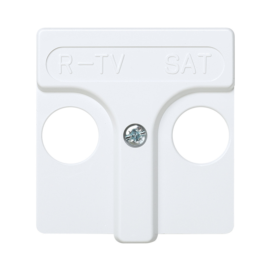 Tapa 45x45 mm para toma R-TV SAT de la Serie 27 de mecanismos empotrados, diseñada para cubrir y proteger las bases de radio, televisión y satélite, garantizando una instalación limpia, segura y estética. Fabricada con materiales de calidad para ofrecer
