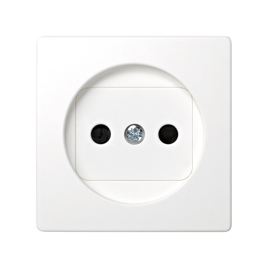 Tapa base bipolar con obturador en color blanco, perteneciente a la Serie 73 Loft de mecanismos de superficie. Diseñada para ofrecer una instalación segura y estética, incorpora obturador de protección para aumentar la seguridad del usuario, evitando con
