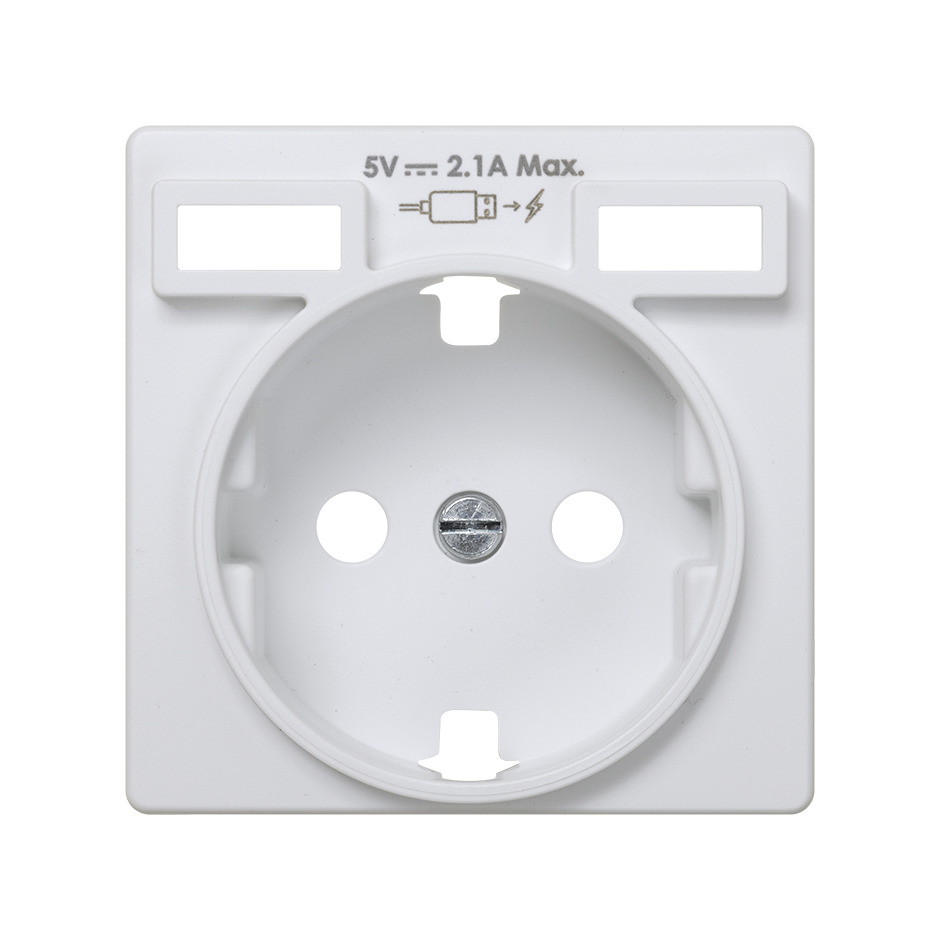Tapa base de enchufe Schuko de la Serie 82 para mecanismos empotrados, con 2 puertos USB tipo A integrados que permiten la carga directa de dispositivos electrónicos sin adaptador adicional. Pertenece a la colección de mecanismos Serie 82, ideal para ins