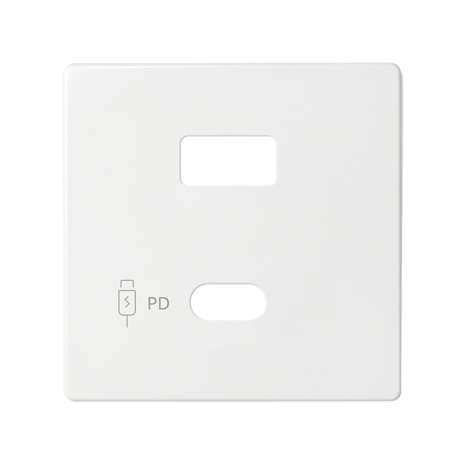 Tapa para cargador USB doble Tipo C + A perteneciente a la Colección de mecanismos de la SERIE 82 empotrar, subserie Serie 82 Detail. Diseñada para integrarse estéticamente con el resto de mecanismos de la gama, permite cubrir y rematar el cargador USB d