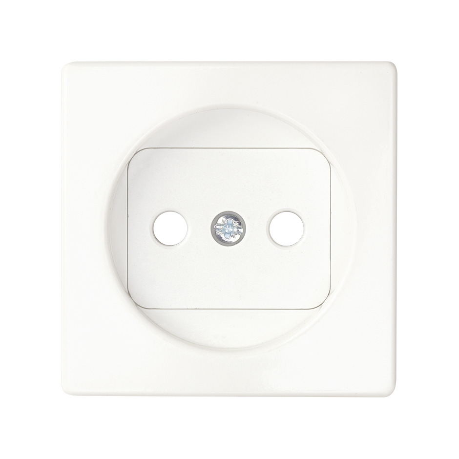 Tapa para enchufe 2 polos con sistema de seguridad, diseñada para la Colección de mecanismos SERIE 82 de empotrar. Indicada para instalaciones empotradas en pared, ofrece protección adicional frente a contactos accidentales, ideal para viviendas, oficina