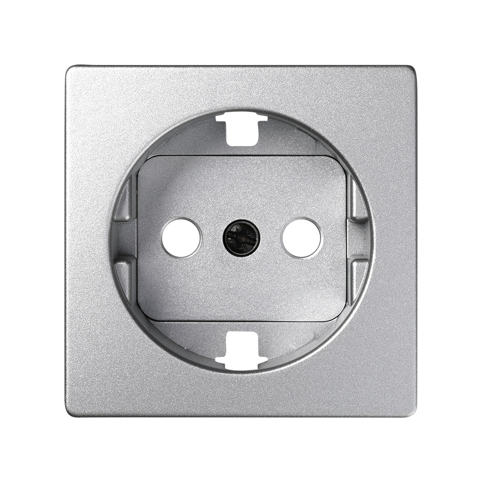 Tapa de enchufe 2P + TT lateral con sistema de seguridad infantil, perteneciente a la Colección de mecanismos Serie 82 para empotrar. Diseñada para garantizar una conexión segura y fiable, incorpora toma de tierra y laterales protegidos, ideal para insta