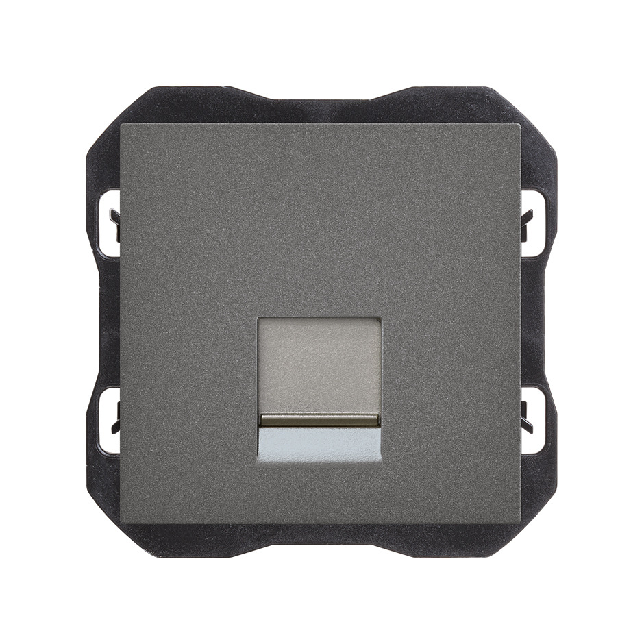 Tapa RJ45 con conector de la Serie Simon 270 para mecanismos empotrados, perteneciente a la colección de mecanismos con estética tradicional ICON. Diseñada para integrar tomas de red RJ45 en instalaciones de interior, ofrece una solución funcional y armo