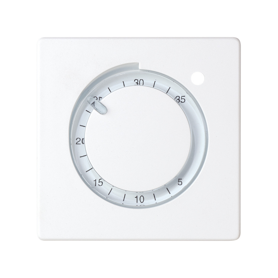 Tapa para termostato compatible con la Serie 82 de mecanismos empotrables. Diseñada para integrarse en la Colección de mecanismos, ofrece un acabado uniforme y discreto que se adapta a cualquier entorno residencial o terciario. Fabricada con materiales d