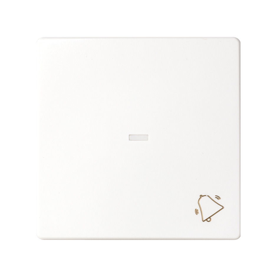 Tecla con visor y grabado de campana mecánica L68 para la Serie 82 de mecanismos empotrados. Diseñada para señalizar y accionar funciones de timbre o llamada, ofrece identificación clara gracias a su grabado específico y visor integrado. Compatible con l