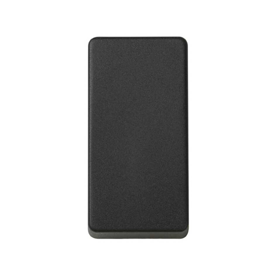 Tecla estrecha en acabado grafito para mecanismos empotrados de la Serie 27 Play, ideal para combinaciones estilizadas y contemporáneas. Diseñada para integrarse en la Colección de Mecanismos Serie 27, ofrece una estética discreta y elegante manteniendo
