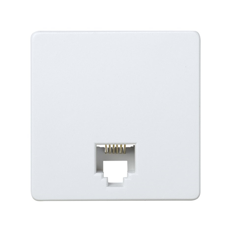 Toma de teléfono de 6 conexiones de la Serie 27 para empotrar, diseñada para integrarse en la Colección de mecanismos y asegurar una conexión telefónica estable y ordenada en instalaciones residenciales o terciarias. Compatible con el resto de mecanismos