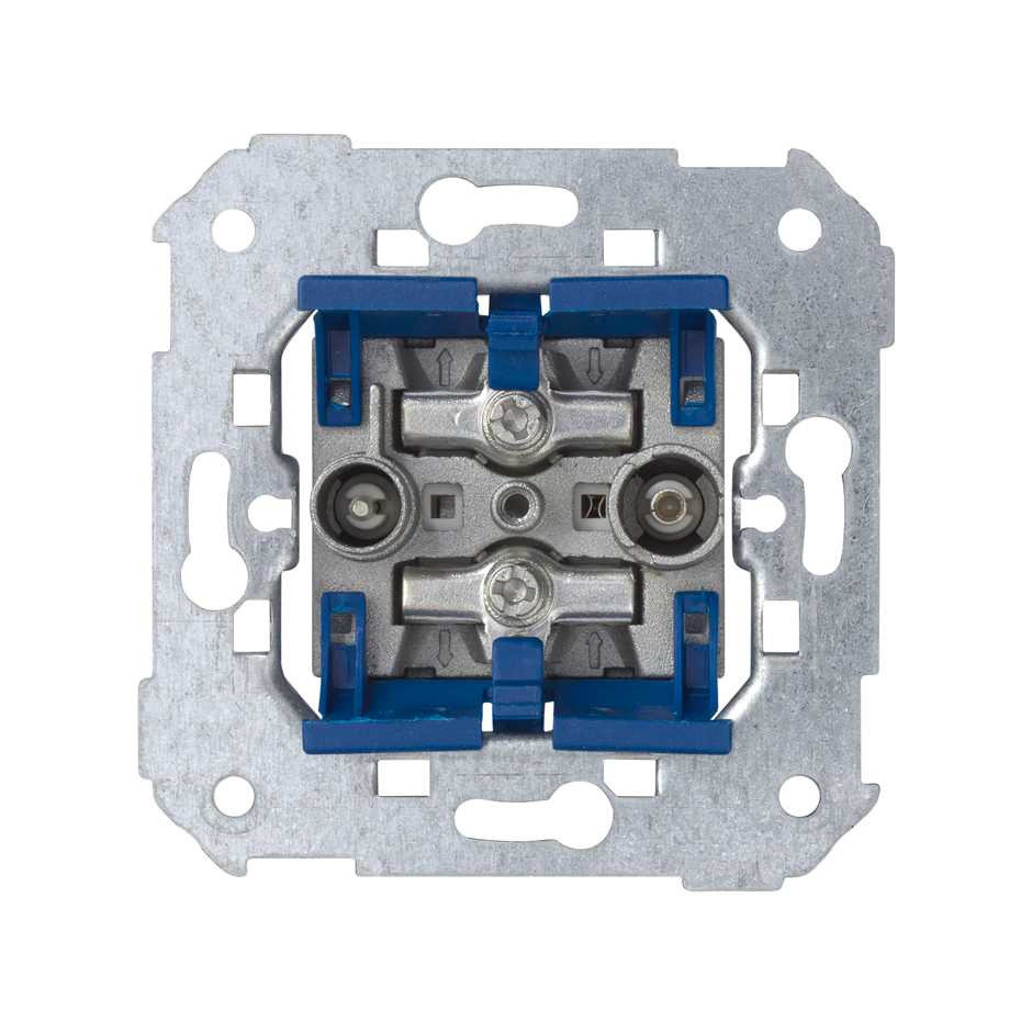 Toma TV-SAT modular intermedia de la Serie 75, diseñada para integrarse en colecciones de mecanismos empotrados, ofreciendo una solución estética y funcional para instalaciones de televisión y satélite. Compatible con la gama de Mecanismos Empotrar, perm