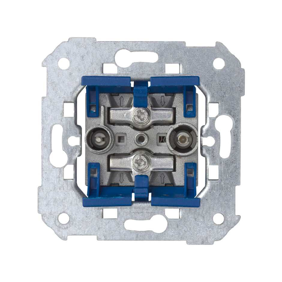 Toma TV-SAT modular única para empotrar, perteneciente a la Colección de mecanismos Serie 75. Diseñada para combinar señal de televisión y satélite en un solo punto de conexión, ofrece una instalación limpia y segura gracias a su formato modular, compati